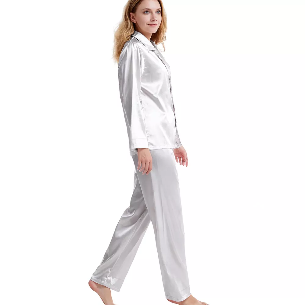 - 2.BEST GIFT:Drift off to dreamland in this silky smooth pajama set with button down tops and elastic waist pants,enjoying cozy time at home,this pajama set can always be the first choice as a gift to your girlfriends,your mom, your family and friends.