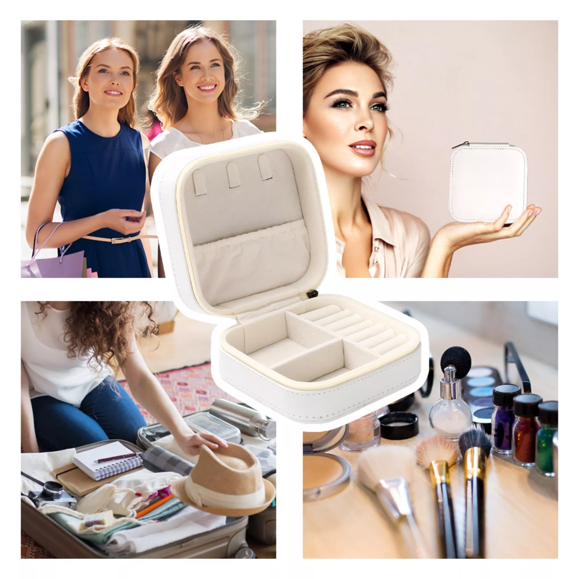 - A practical box to store Jewelry. It can store necklaces, earrings, rings, etc. This box keeps your jewelries neat and organized when you travel and makes your trip more enjoyable.