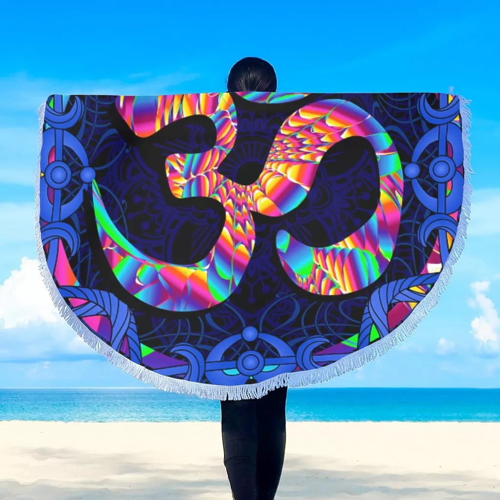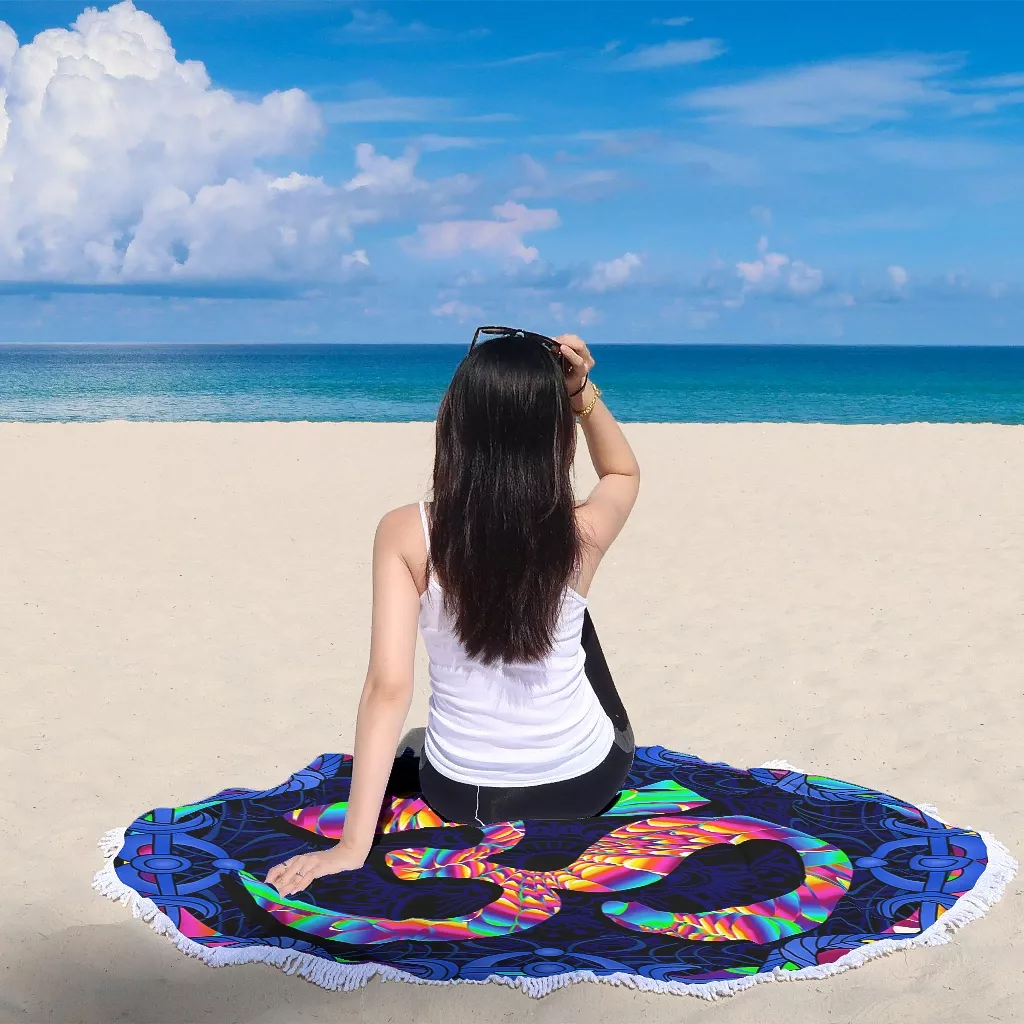 Yoga Monogrammed Round Beach Towel Blanket Circle Beach Towels Picnic Yoga Mat Tapestry