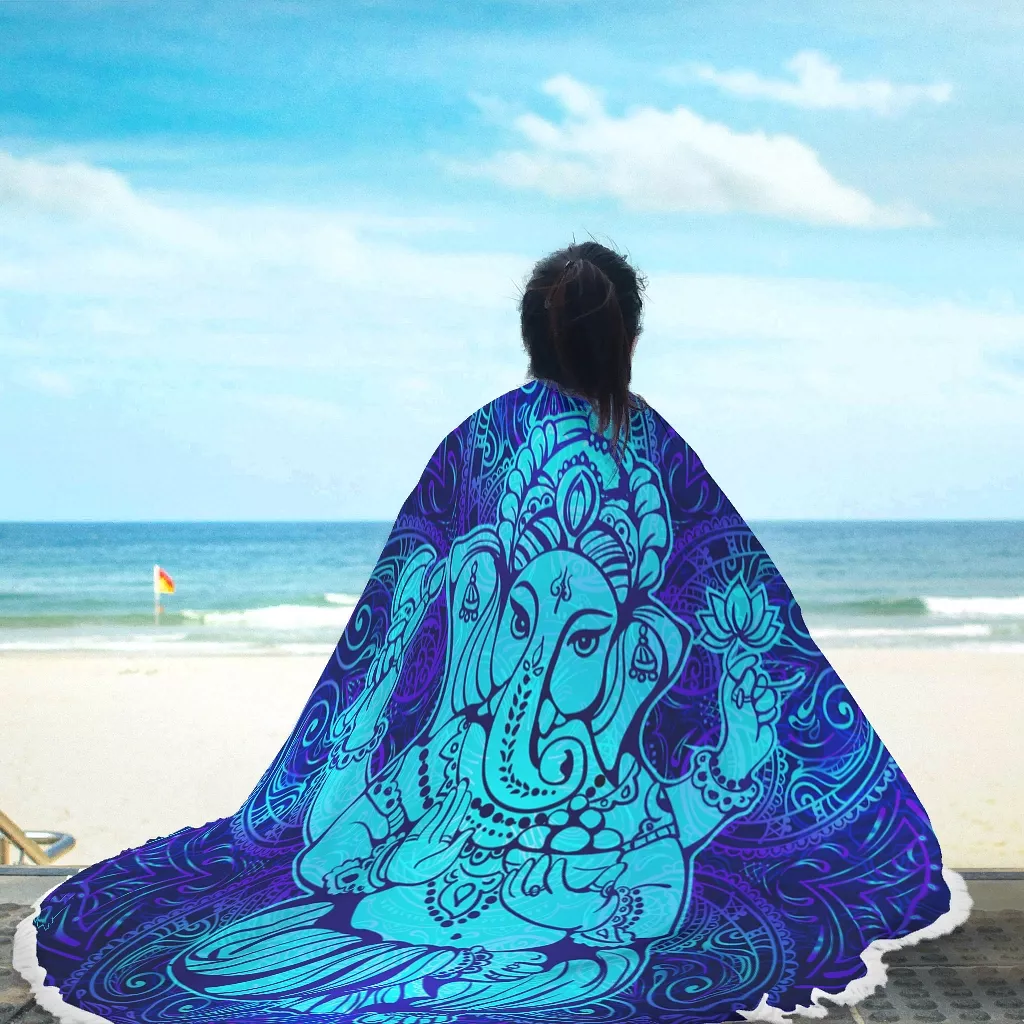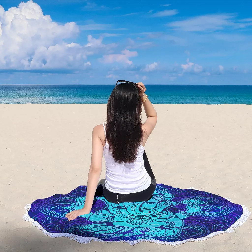 Blue Yoga Elephant Round Beach Towel Blanket Big Circle Beach Towels Yoga Mat Tapestry