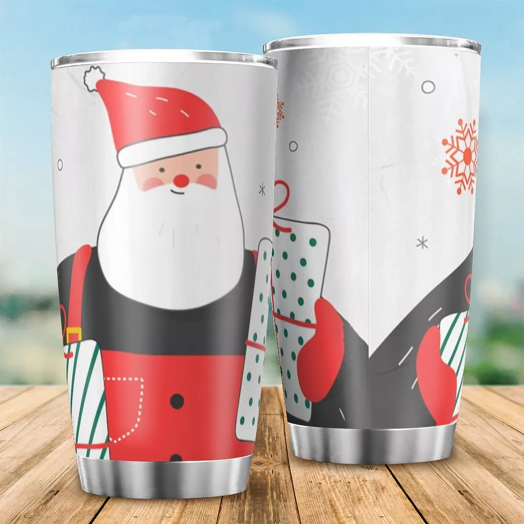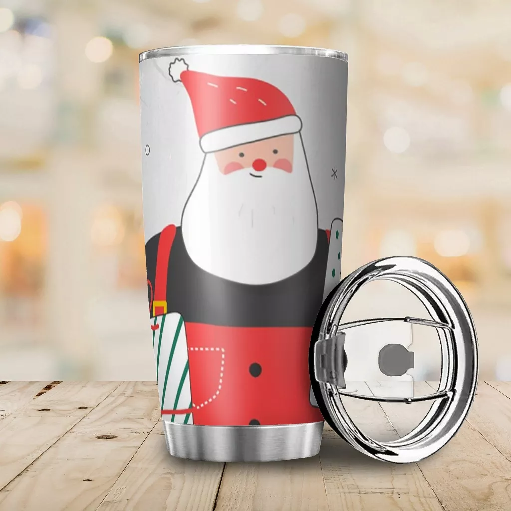 Printed Portable Stainless Steel Car Mug Santa