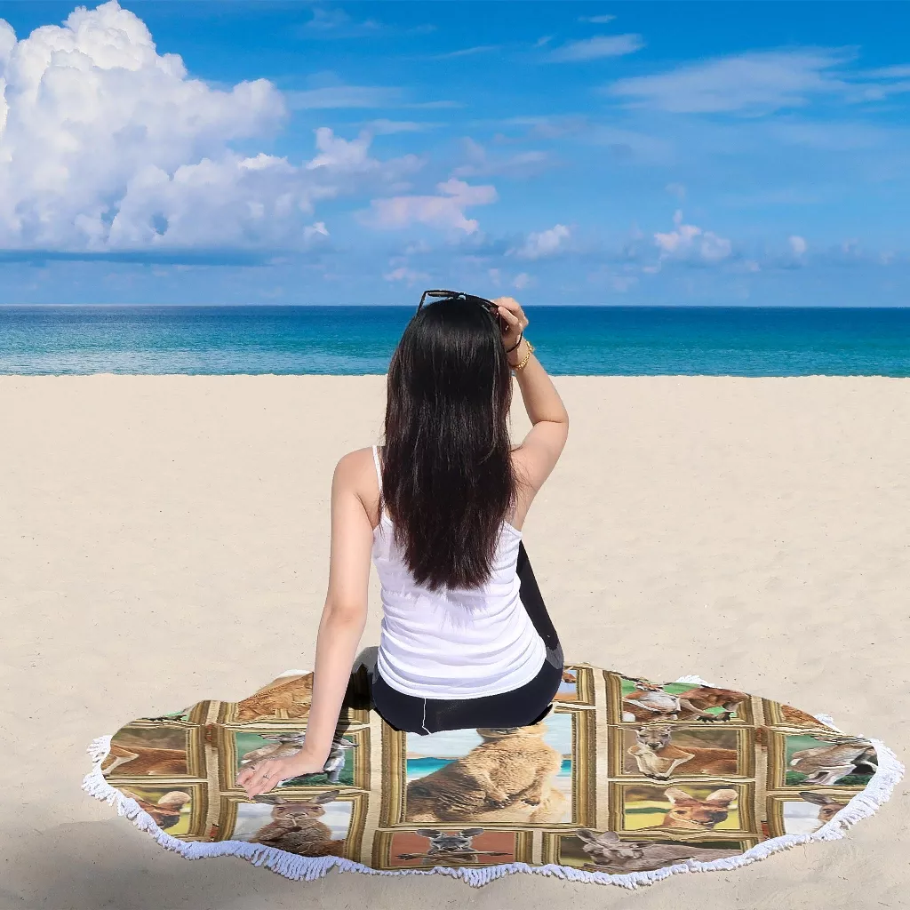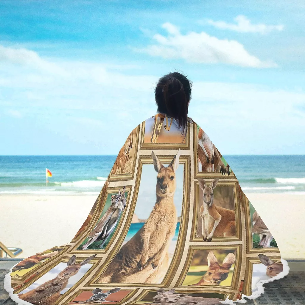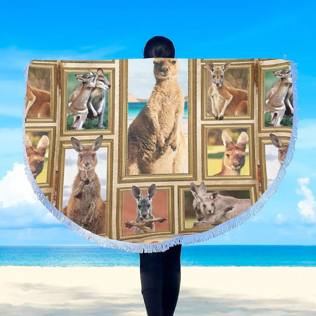 Animal Kangaroo Cute Round Beach Towel Microfiber Roundie Thick Beach Towel Blanket Throw Picnic Mat
