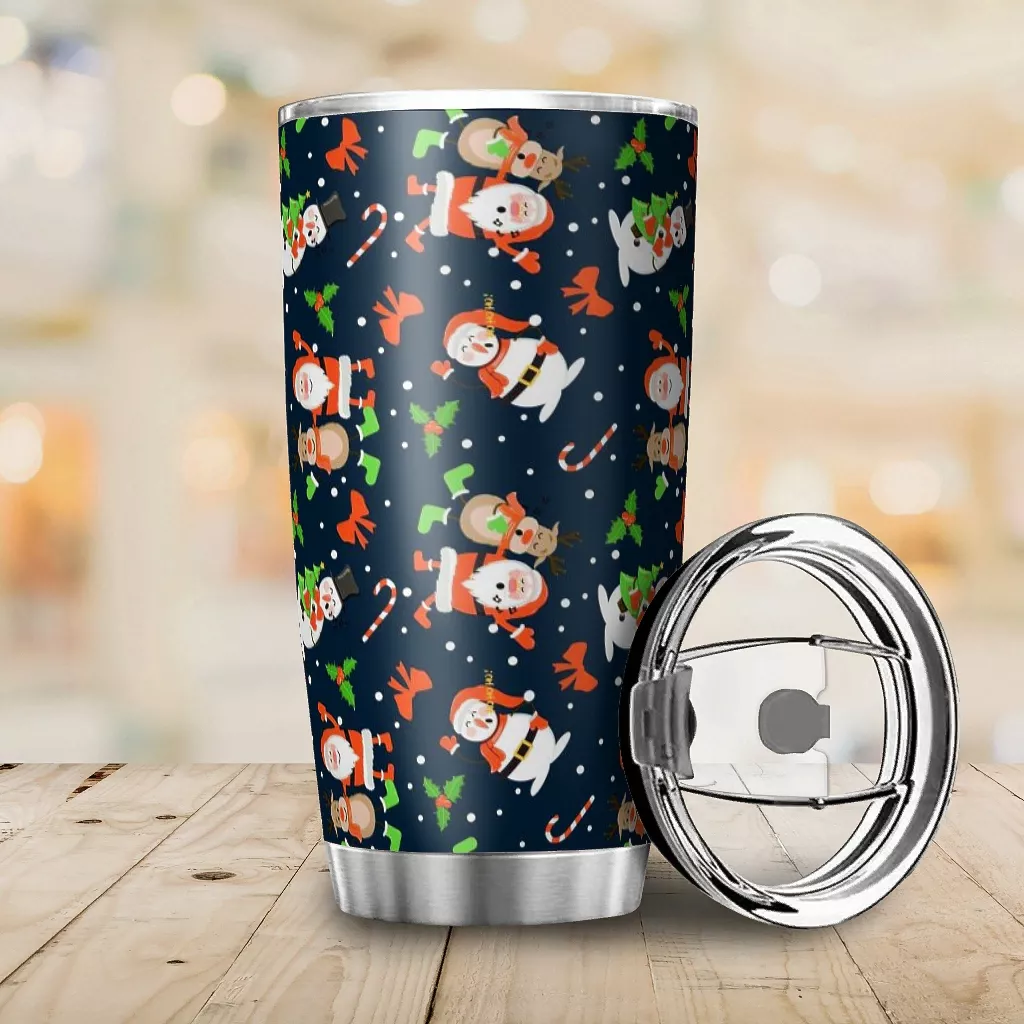 Printed Portable Stainless Steel Car Mug Santa And Elk
