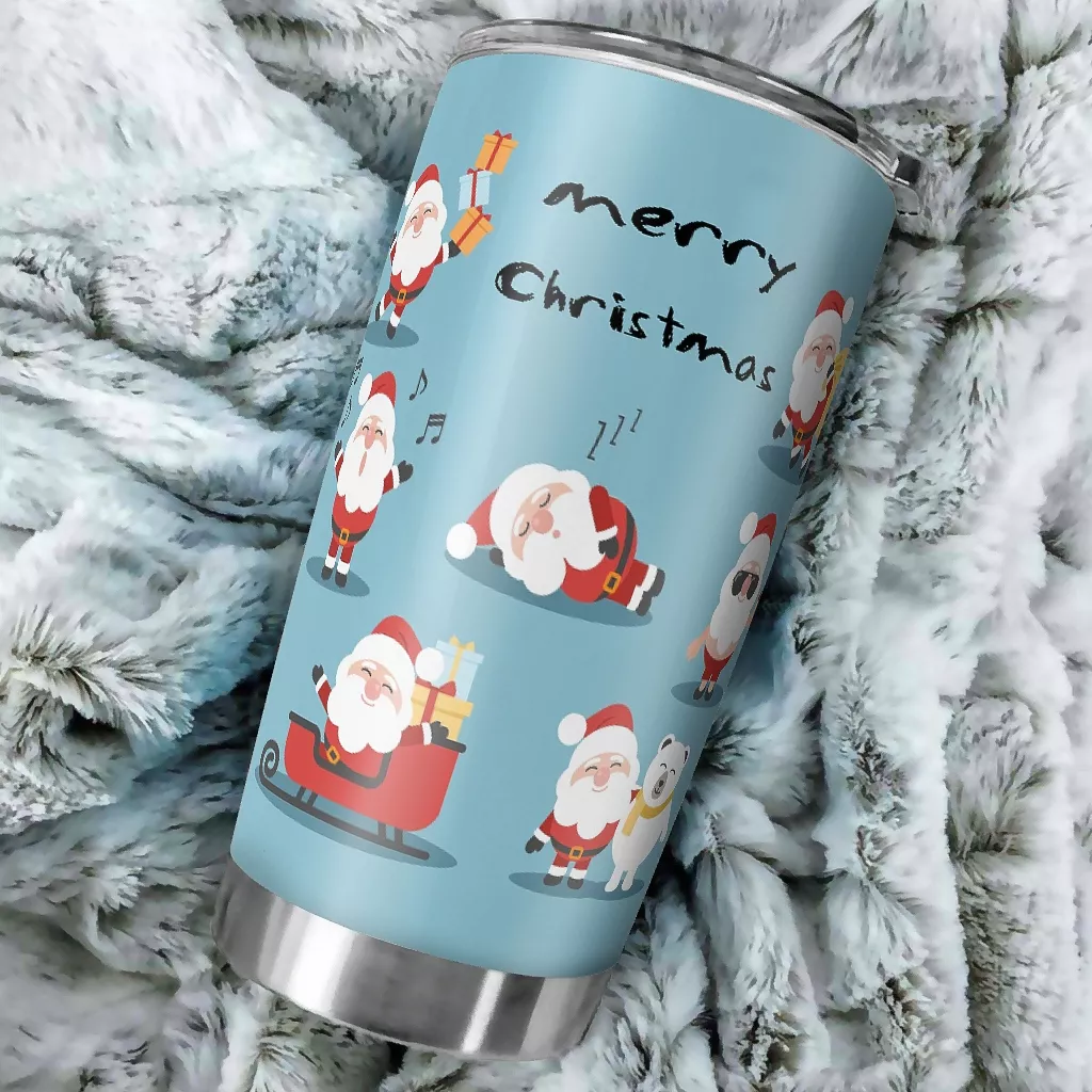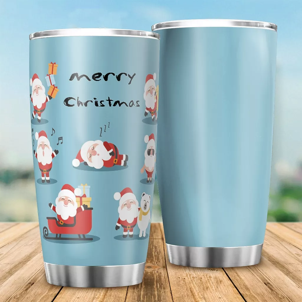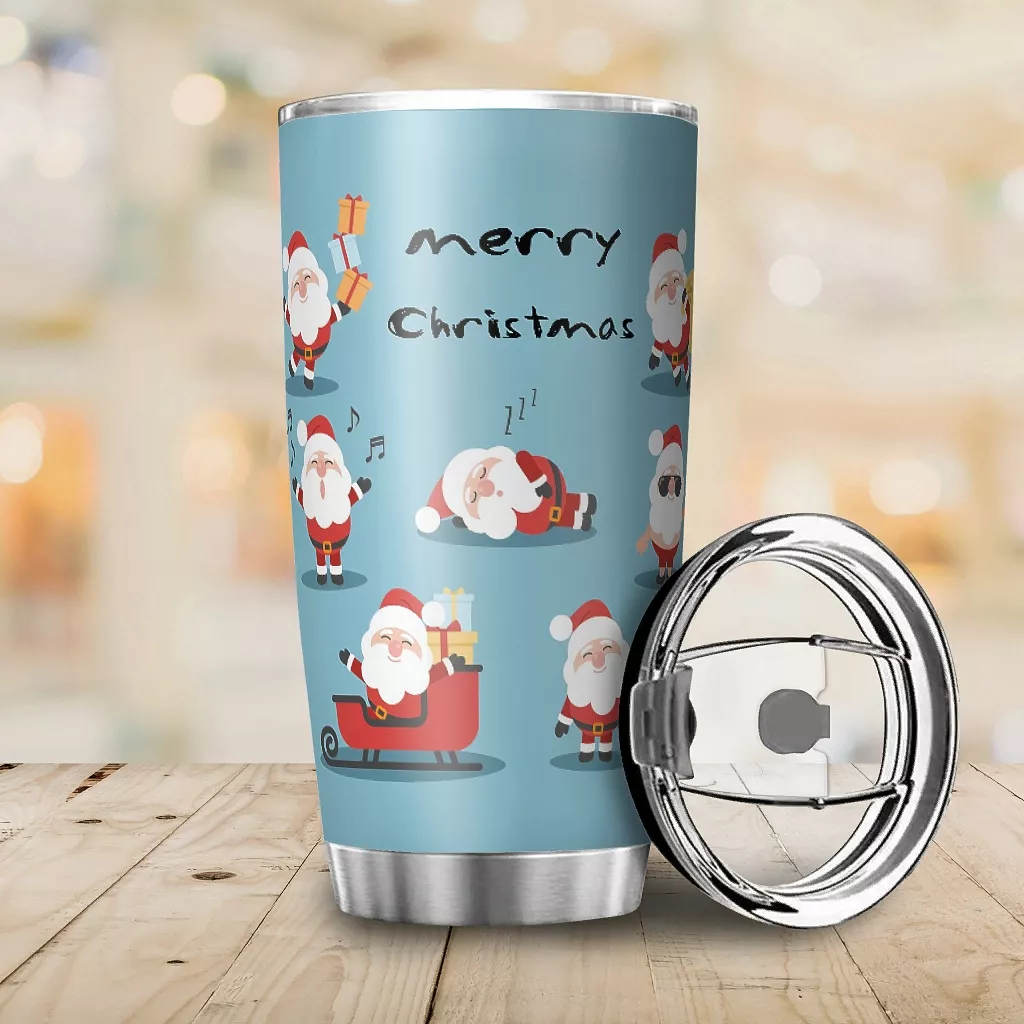 Printed Portable Stainless Steel Car Mug Happy Santa