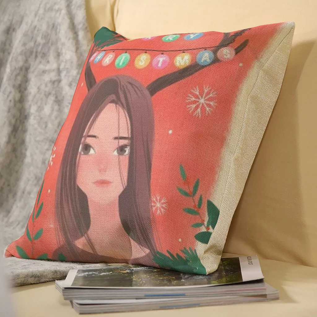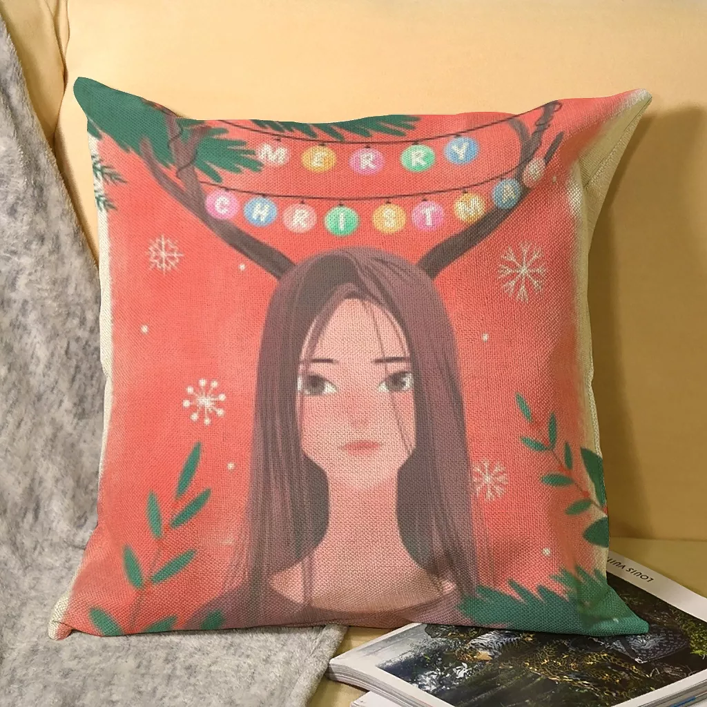 Throw Pillow Bedroom For Sofa/car Soft And Comfortable Cushion Cover Girl With Antlers