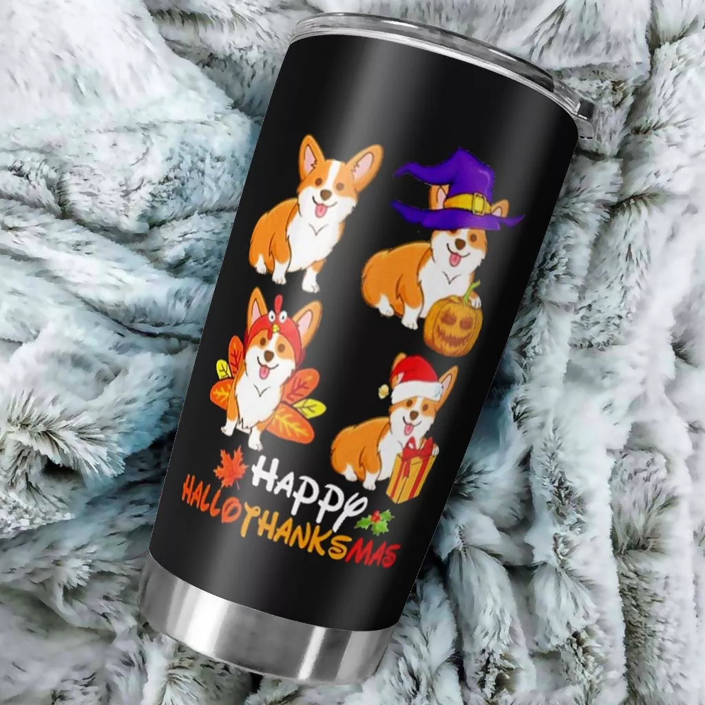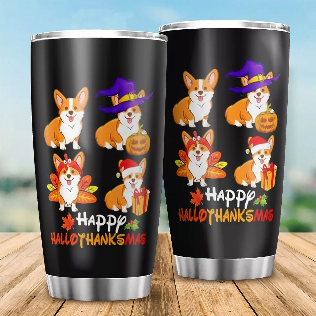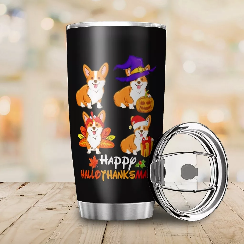 Double Wall Stainless Steel Vacuum Insulated Tumbler Cup Travel Mug Corgi Happy Hallothanksmas