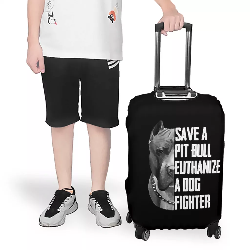 Save A Pitbull Euthanize A Dog Fighter Travel Luggage Cover Spandex Suitcase Protector Baggage Cover