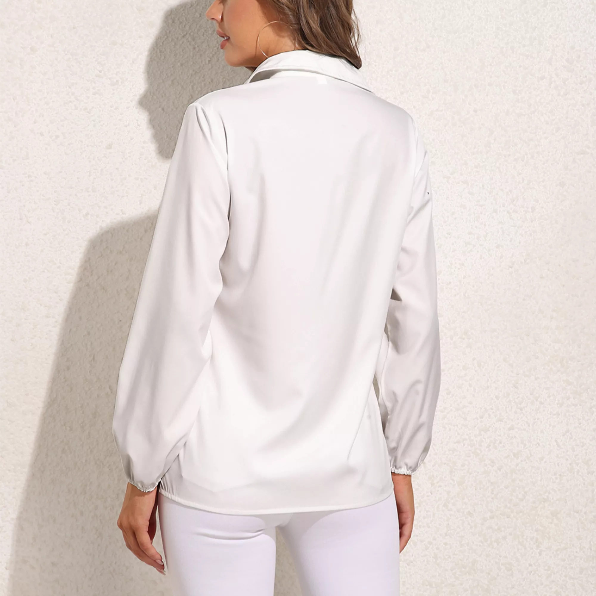 - Features: Vintage V-neck design, long sleeves and elastic cuffs, button closure, loose fit.